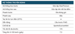 | Hệ thống treo (Trước/ sau) | Treo độc lập MacPherson/ Liên kết đa điểm |
